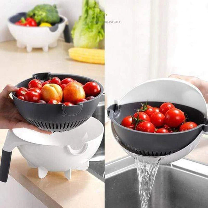 Cortar y lavar, fácil y rápido, hebilla giratoria, ángulo de rotación automático, canasta de asfalto siempre estable, fácil de lavar vegetales y drenaje.